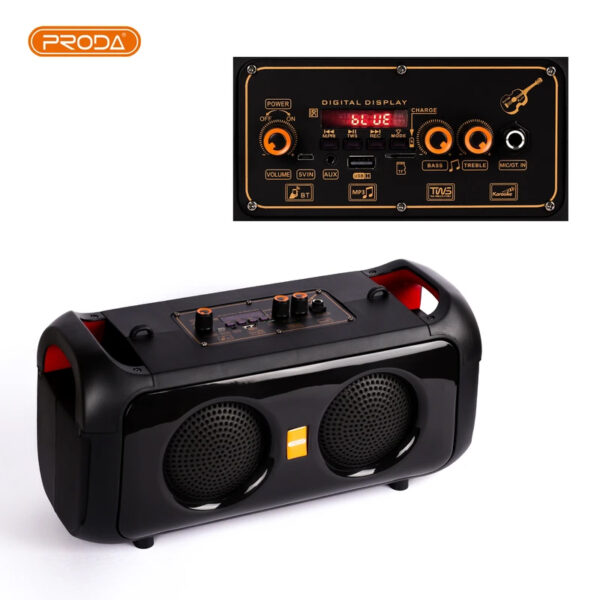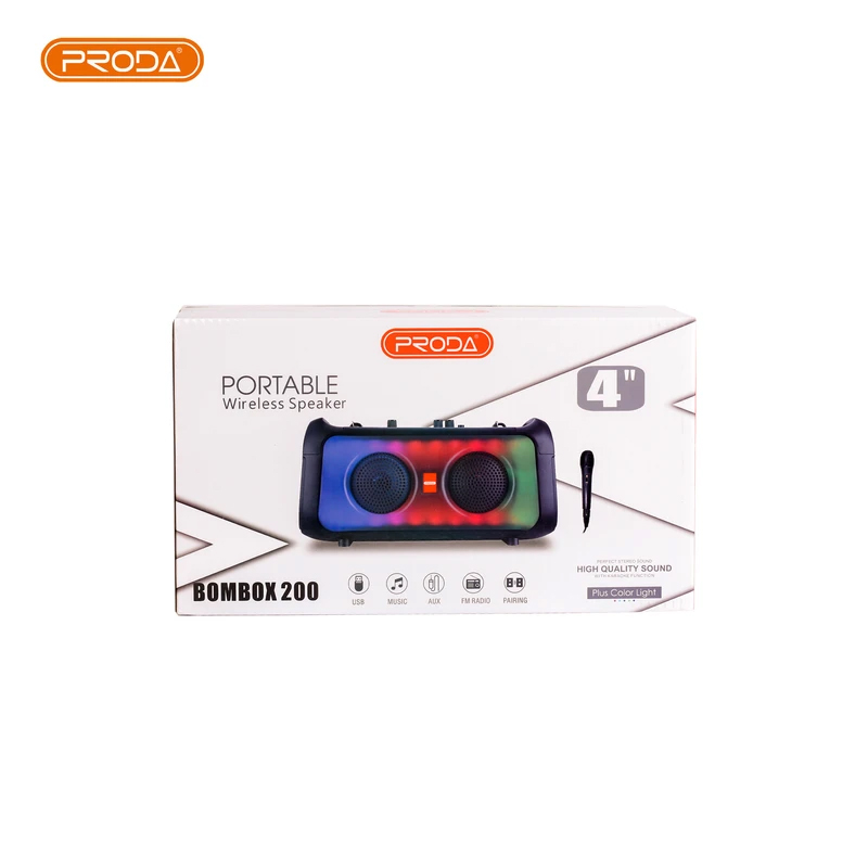 با اسپیکر قدرتمند و قابل حمل PRODA BOM BOX 200 میتوانید مهمانی را با صدای قدرتمند و نمایش نور پویا شروع کنید.این اسپیکر جذاب دارای سیستم TWS می باشد که دو عدد اسپیکر با یک دیواس به هم متصل میشوند . این دستگاه با نورپردازی منحصر به فرد LED هماهنگ شده، با صدای قدرتمند و باس عمیق، برای هر مهمانی، محتوای جدیدی به ارمغان میآورد.اسپیکر PRODA BOM BOX 200دارای یک طراحی زیبا و چشم نواز است که میتوان آن را با یک دست حمل کرد. همراه با صدای با کیفیت با ظرفیت قدرت ۲۰ وات با پاسخ فرکانس۱۰۰ هرتز تا ۲۰ کیلوهرتز و حساسیت ۸۵دسی بل همراه است . اسپیکرهای PRODA BOM BOX 200یک اسپیکر بلوتوثی با چراغهای LED زیبا و سیستم ارتقا یافته مدل قبلی این برند است. به راستی PRODA BOM BOX 200 به شما تجربه سمعی و بصری بی نظیر و همه جانبه ای میبخشد که هر مهمانی را به یک اثر هنری تبدیل میکند. هر نوع موسیقی با نمایش نور پویا بهتر است. نمایش نور پویا که با ضربان همگام سازی میشود، رنگهای همگام با ضربات را به حرکت در میآورد، در حالی که استروبها و الگوهای قابل تنظیم چشمان شما را خیره میکند. این یک تجربه شنیداری و بصری منحصر به فرد است که هر مهمانی را به یک اثر هنری تبدیل مینماید. همچنین میتوانید مهمانی را تمام روز تأمین کنید.از سویی دیگر، با ورودیهای میکروفون و گیتار، میتوانید استعدادهای خود را هنگام آواز خواندن و بازی نشان دهید PRODA BOM BOX 200 لحظات خوشی را برای شما به ارمغان میاورد.