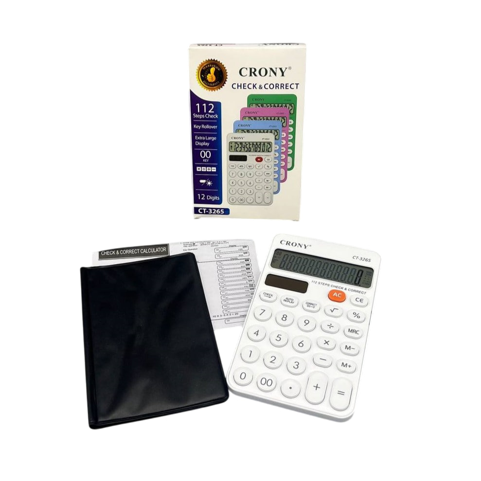 ماشین حساب کرونی CT-3265 با طراحی ساده و سبک، انتخابی مناسب برای استفادههای اداری، فروشگاهی و دانشآموزی است. این مدل با دو منبع تغذیه (باتری و نور خورشید)، دوام بالایی دارد و همراه با کیف محافظ و پایه زیرین عرضه میشود تا استفاده از آن راحتتر و ایمنتر باشد.