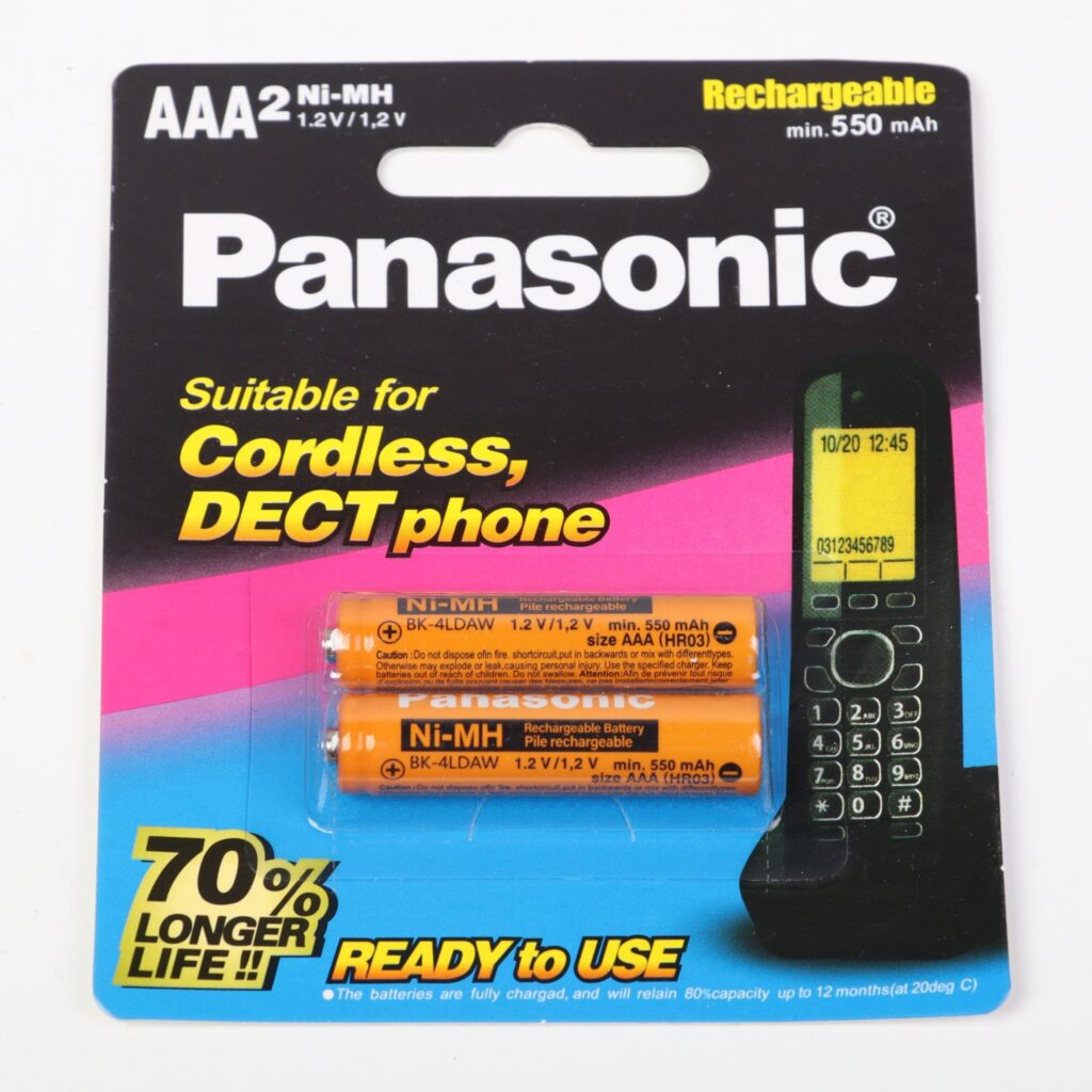 باتری‌های شارژی نیم‌قلمی (AAA) پاناسونیک با ظرفیت ۵۵۰ میلی‌آمپر ساعت، از نوع Ni-MH (نیکل متال هیدرید) هستند و مناسب برای دستگاه‌هایی که به باتری‌های قابل شارژ نیاز دارند. این باتری‌ها به دلیل توان بالای شارژ مجدد و طول عمر بالا، به ویژه برای تلفن‌های بی‌سیم (DECT) و دیگر دستگاه‌های الکترونیکی کوچک مناسب هستند.